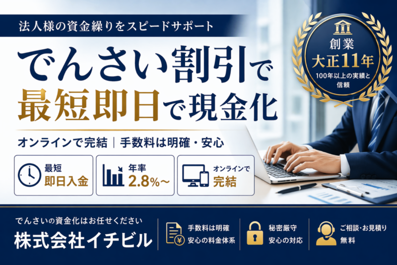 - オンラインで簡単見積り:こちらをクリック→でんさい割引オンライン見積り